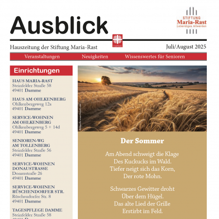 Herzlich Willkommen auf der Homepage der Stiftung Maria-Rast. Hier können Sie sich einen Überblick über unsere Einrichtungen und vielfältigen Aktivitäten verschaffen.