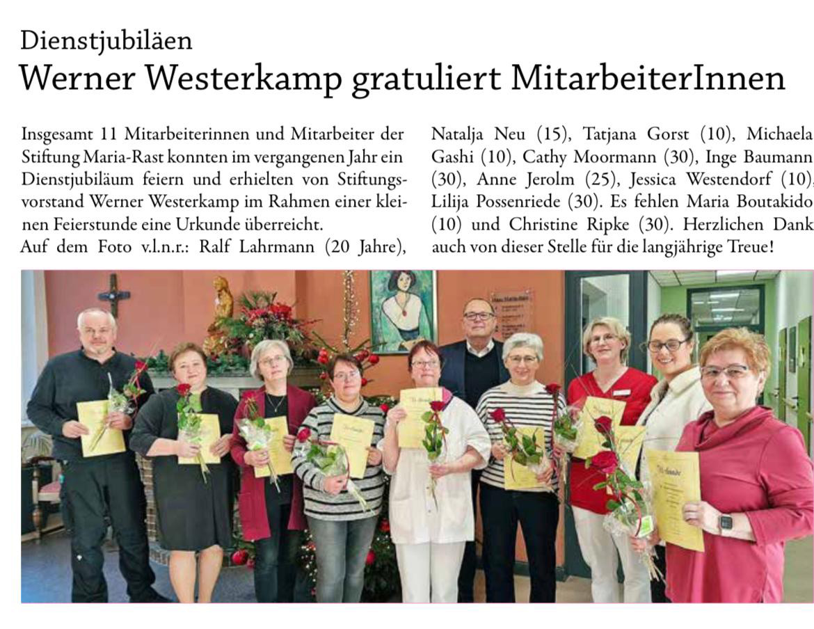 Dienstjubiläen – Werner Westerkamp gratuliert MitarbeiterInnen / OV-Beitrag Januar 2026