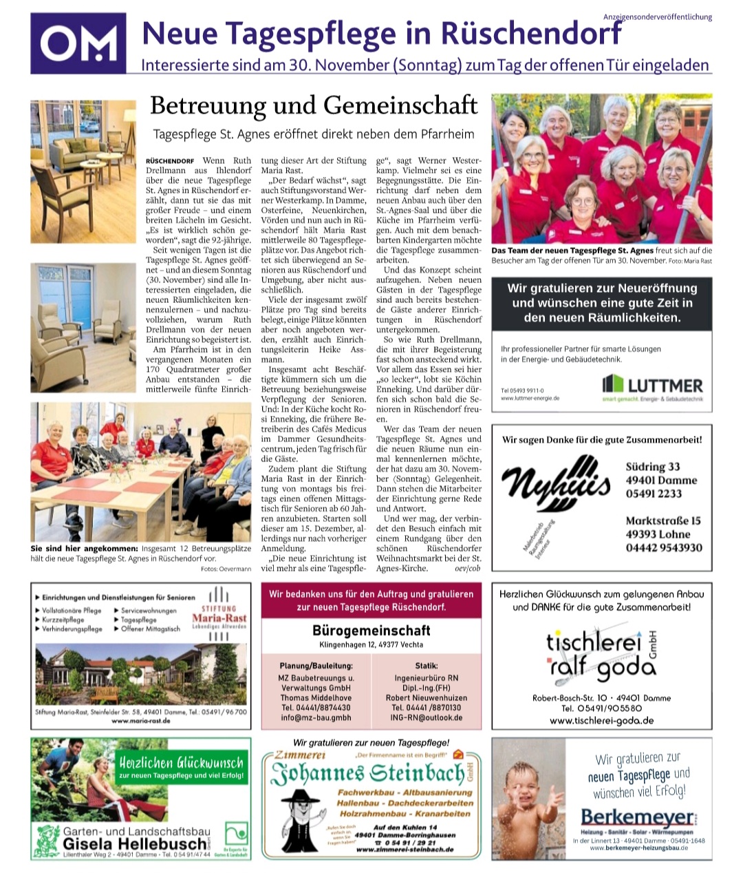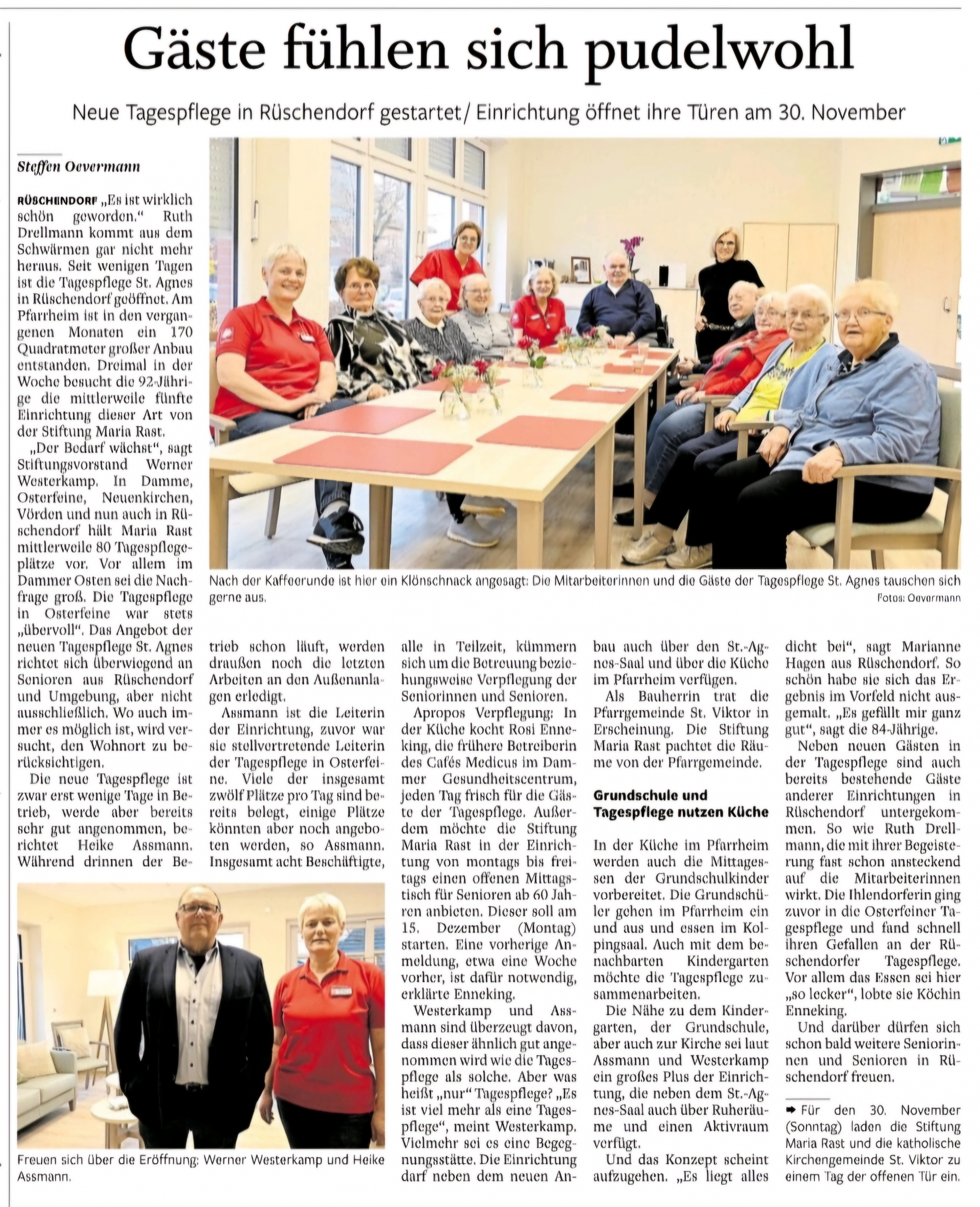 Gäste fühlen sich pudelwohl – Neue Tagespflege in Rüschendorf gestartet / OV-Beitrag November 2025